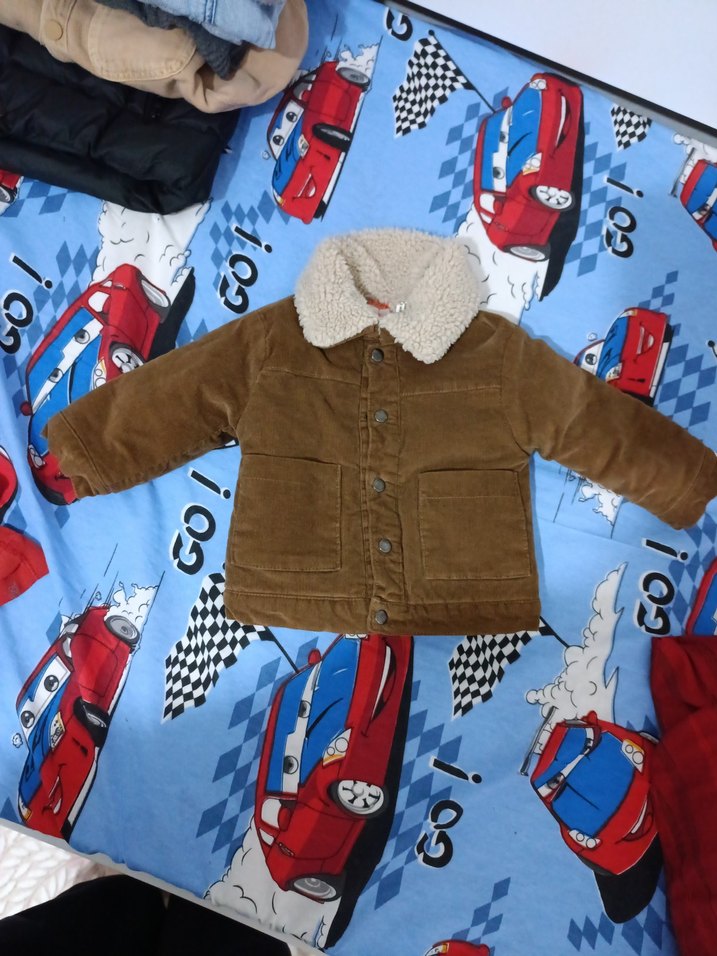 Düğmeli ön ve kesik yaka detaylı, baskılı desenli kahverengi, erkek çocuk ceket. Yumuşak ve sıcak dokulu kumaştan, günlük sokak stili için uygun.