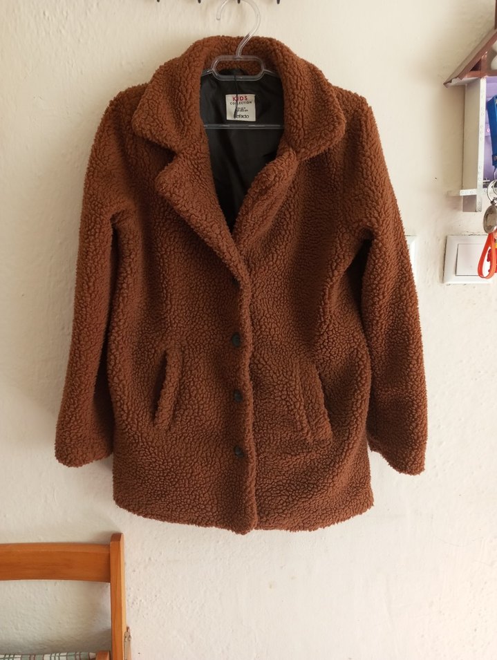 Düğmeli, kahverengi unısex çocuk kaban. Yumuşak ve sıcak dokuda, uzun kollu, bol kesim rahat bir sokak stili sunar. Günlük kullanım için uygundur. yeni sayılır bir kaç defa giyildi. Eni 48 cm boyu 71 cm