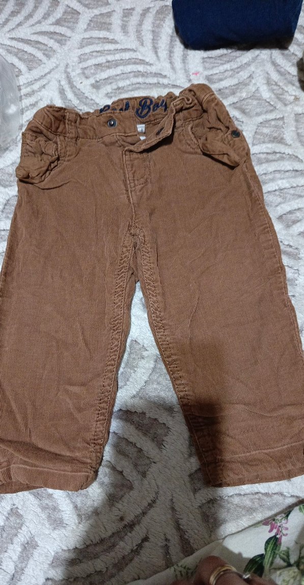 Yumuşak keten kumaştan, düğmeli, bol kesim kahverengi erkek çocuk pantolonu. Düz tasarımı sokak stili için uygundur.