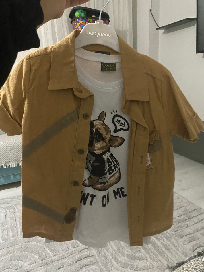 Düğmeli Kahverengi Erkek Çocuk Kısa Kollu Gömlek