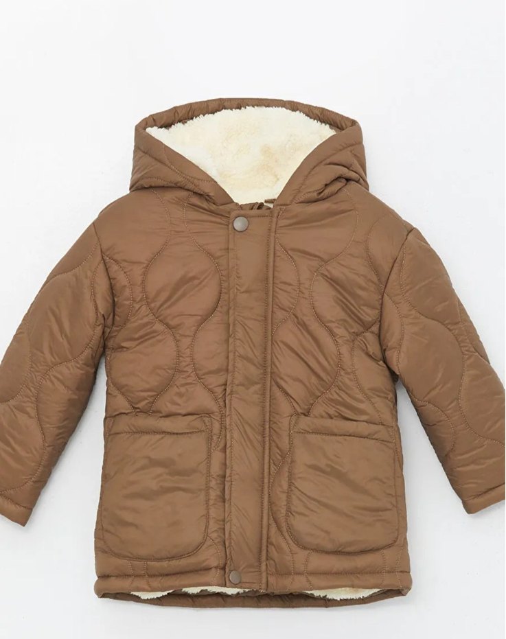 Düğmeli ön cepheli ve kesimli yaka detaylı, yumuşak ve sıcak tutan kahverengi erkek çocuk montu. Sokak stili için uygun, rahat ve şık. 4 ve 5 yaş için