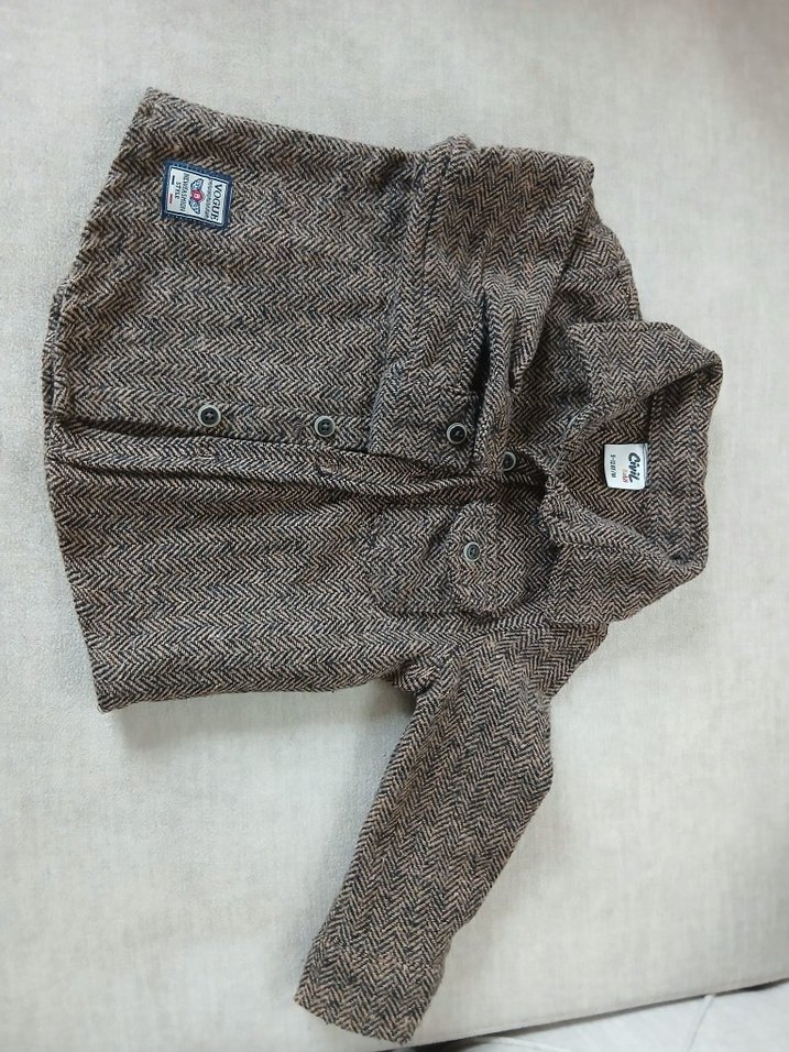 Kahverengi yün kumaştan, düğmeli, notched lapel yakalı erkek çocuk kabanı. Regular fit, trendy casual ve street wear tarzına uygun, sade tasarım. hic kullanilmad