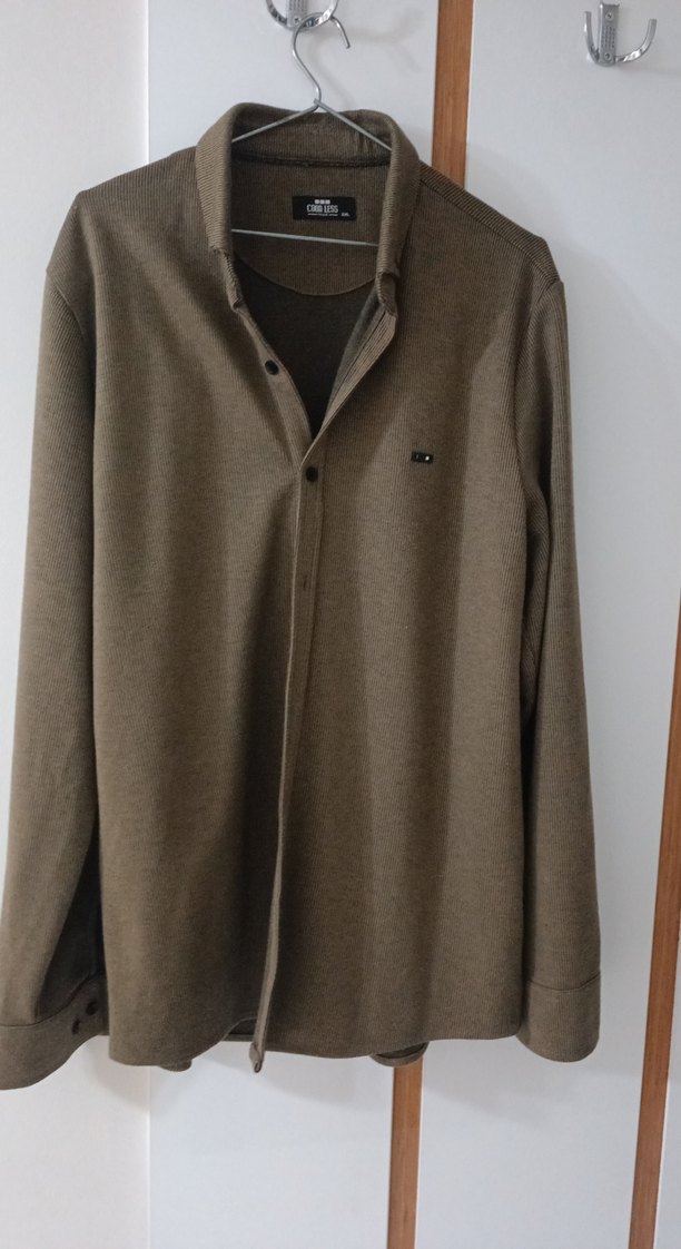 Düğmeli ön cepheli, kahverengi uzun kollu erkek gömleği. Yumuşak ve sıcak kumaştan, rahat kesim. Günlük sokak stiline uygun, desensiz ve konforlu.