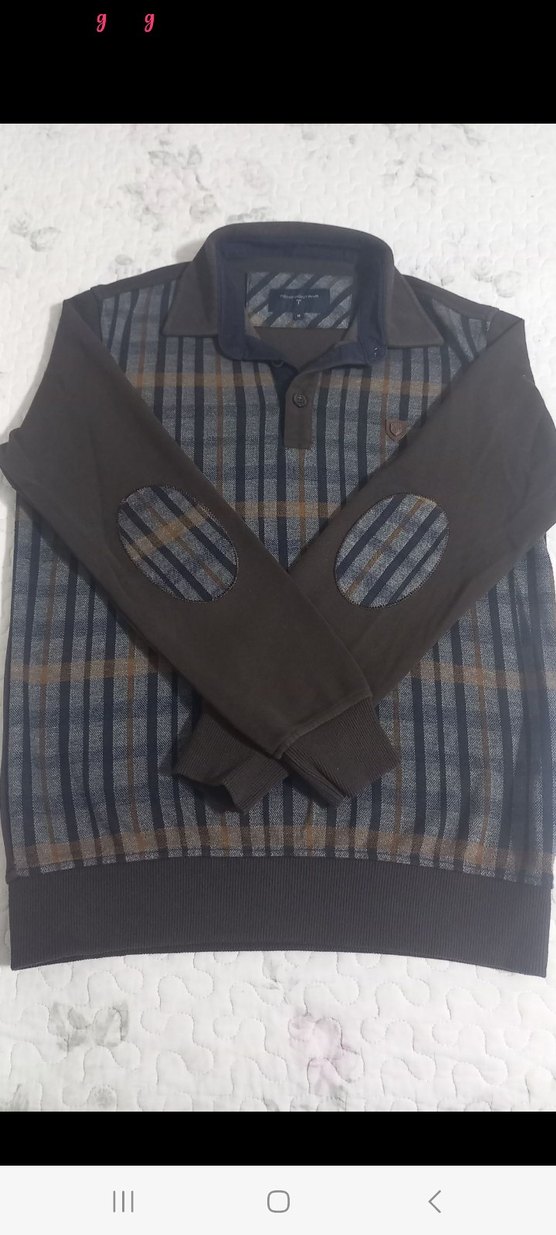 Düğmeli, bisiklet yaka ve uzun kollu bu erkek triko kazak, sentetik kumaştan üretilmiştir. Normal kesim, koyu kahverengi ve ince çizgili desene sahiptir. Günlük ve sokak stiline uygundur.