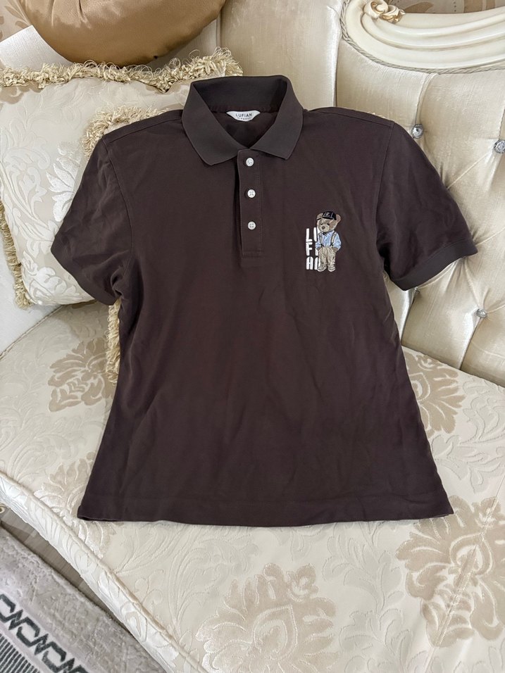 Düğmeli plaket ve göğüs kısmında baskılı detay bulunan, yumuşak ve sıcak kumaştan yapılmış, kısa kollu ve yakalı kahverengi fitted polo tişörttür.
