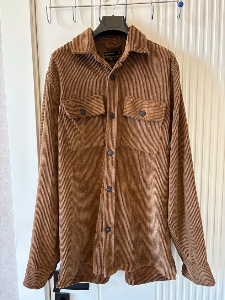 Düğmeli Kahverengi Erkek Süet Gömlek