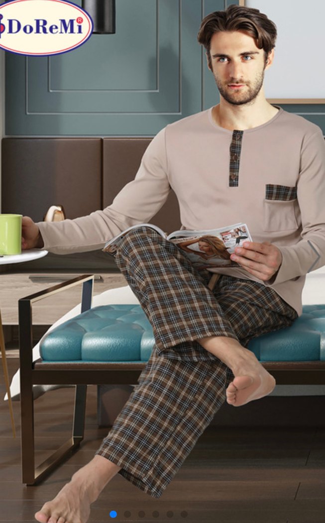 Düğmeli Kahverengi Gri Erkek Pijama Takımı