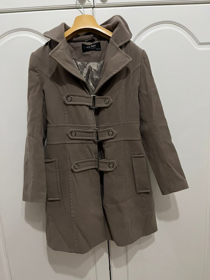 önünde üç düğmeli tokası bulunan kahverengi kaban, iki cep ile rahat kullanım sunar. İç kısmı yumuşak astarlıdır.