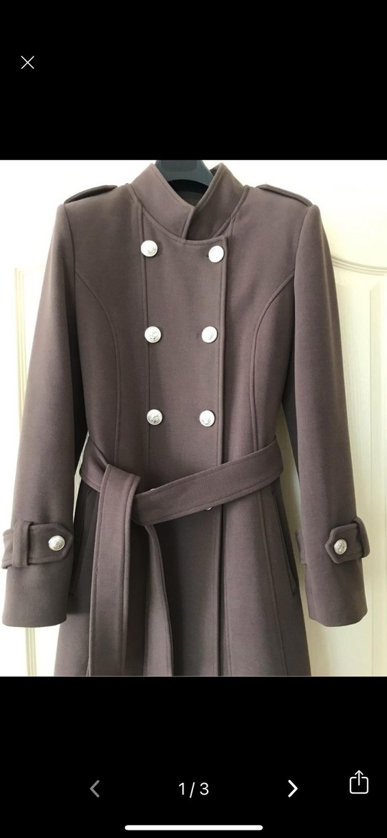 Çok iyi durumda.Düğmeli önü, kemerli ve normal kesim olan bu kahverengi midi kaban, notlu yaka ve uzun kolludur. Ofis için uygun, yumuşak ve sıcak kumaştan yapılmıştır.