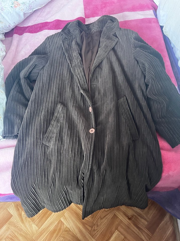 Düğmeli kahverengi kadife Kaban