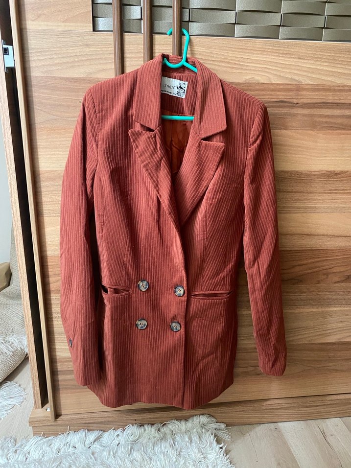 Düğmeli Kahverengi Kadife Kadın Blazer Ceket