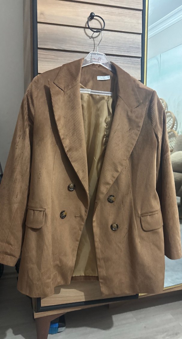 Düğmeli Kahverengi kadife Kadın Blazer ceket