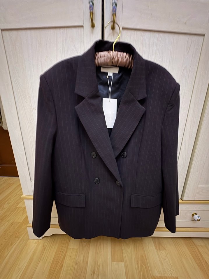 Düğmeli, kahverengi kadın blazeri, yakalı ve uzun kolludur. Ofis ve iş ortamlarına uygun, düz kesim ve midi boyda klasik bir tasarıma sahiptir.