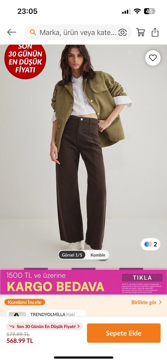 Düğmeli, kahverengi pamuklu, bol kesim midi boy kadın boyfriend pantolon. Günlük kullanıma uygun, desensiz sade tasarım. ✨