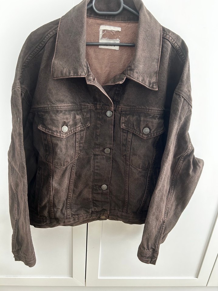 Düğmeli Kahverengi Kadın Denim Ceket zara etiketi kesik