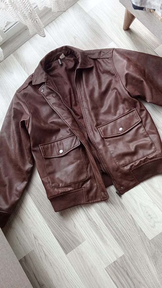 Düğmeli kahverengi parlak deri biker ceket, notched yakalı ve uzun kollu. Rahat kesimi ve iki ön ceplidir. Normal midi boyda, günlük kullanıma uygun. xxs yazıyor xs s m yede olur oversize ölçü veririm ciddi alıcılara