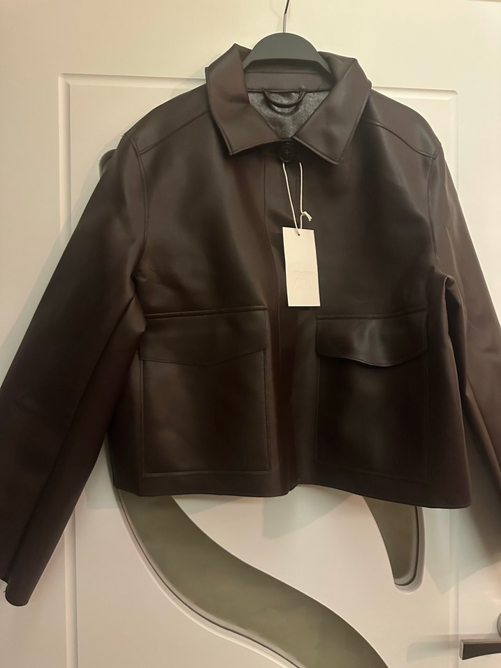 Bu kadın deri ceket, normal midi uzunlukta, kahverengi renkte ve düğmeli. Uzun kollu, regular fit ve kesik yaka detaylıdır. Ofis ve sokak stiline uygundur.