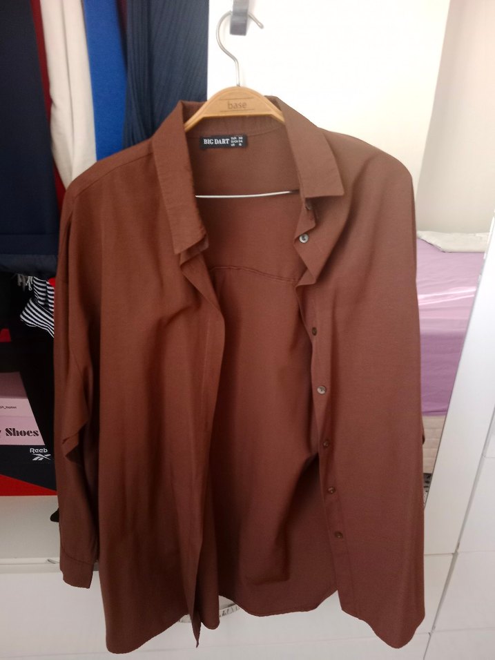 Kahverengi, düğmeli kadın gömlek, normal boy ve regular fit. Uzun kollu, yakası notched lapel, ipeksi dokulu, günlük ve rahat sokak stili için uygun. hiç bir sıkıntısi yok tertemiz ürün