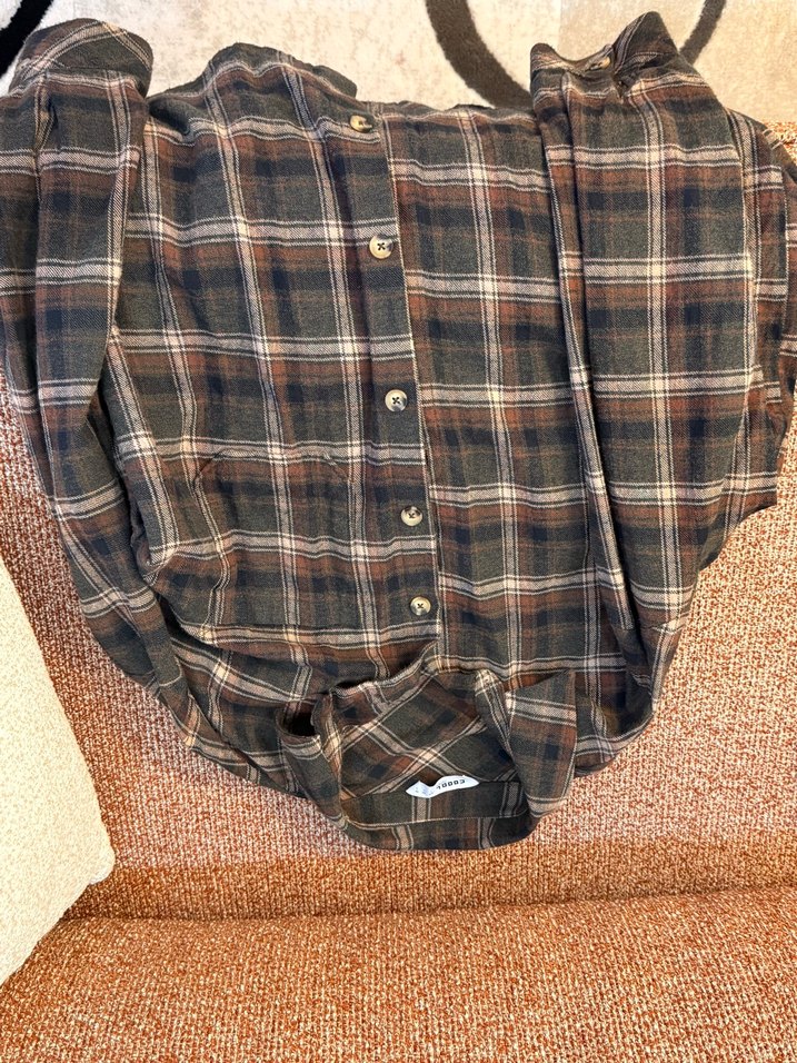 Düğmeli, uzun kollu kahverengi gömlek, yumuşak dokulu kumaştan, rahat kesim ve açık yaka ile günlük şık sokak stili için uygun.