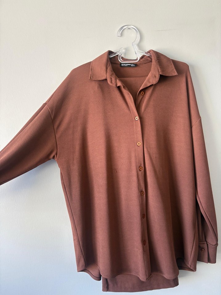 Düğmeli Kahverengi Kadın ikili takım