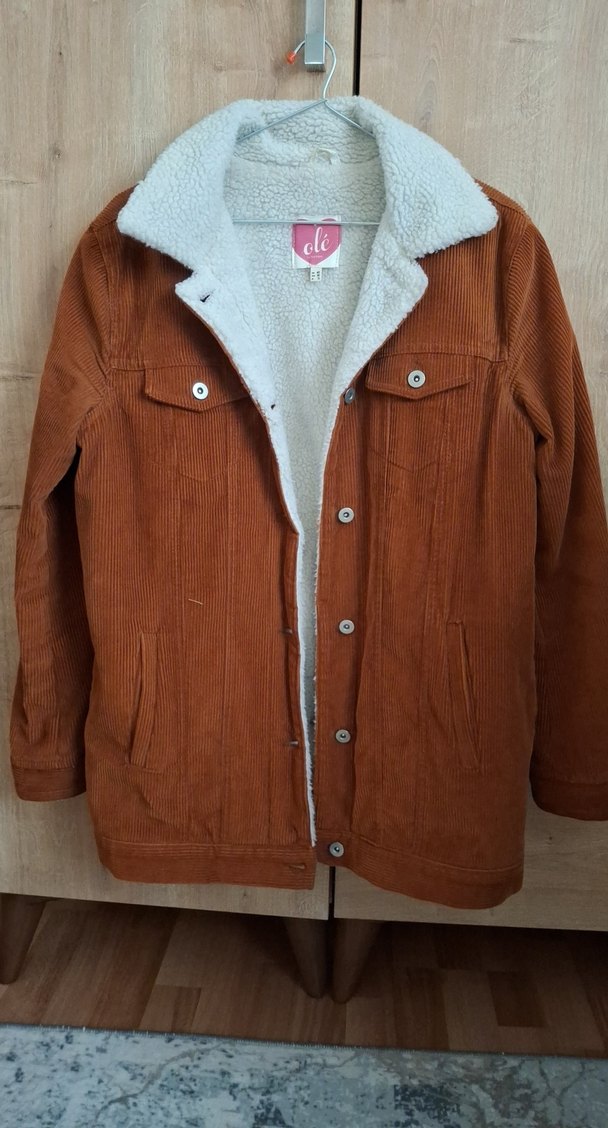 Düğmeli kahverengi kadife vintage kadın ceket,ceket boyu uzun,notalı yaka ve uzun kolludur. Rahat kesimi ve gri iç astarı ile günlük kullanıma uygundur.