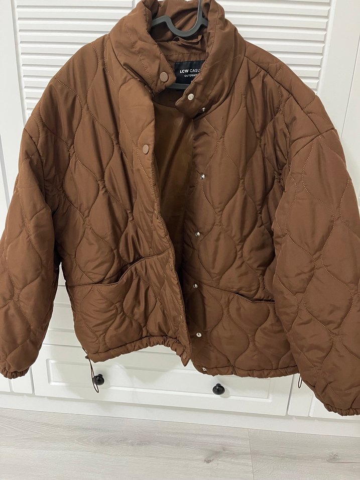 Kahverengi, düğmeli kadın kışlık ceket, rahat kesimi ve notched lapel yakası ile trend görünüme sahiptir. Strappy kollu, sentetik kumaştan midi boyda, günlük kullanıma uygundur.