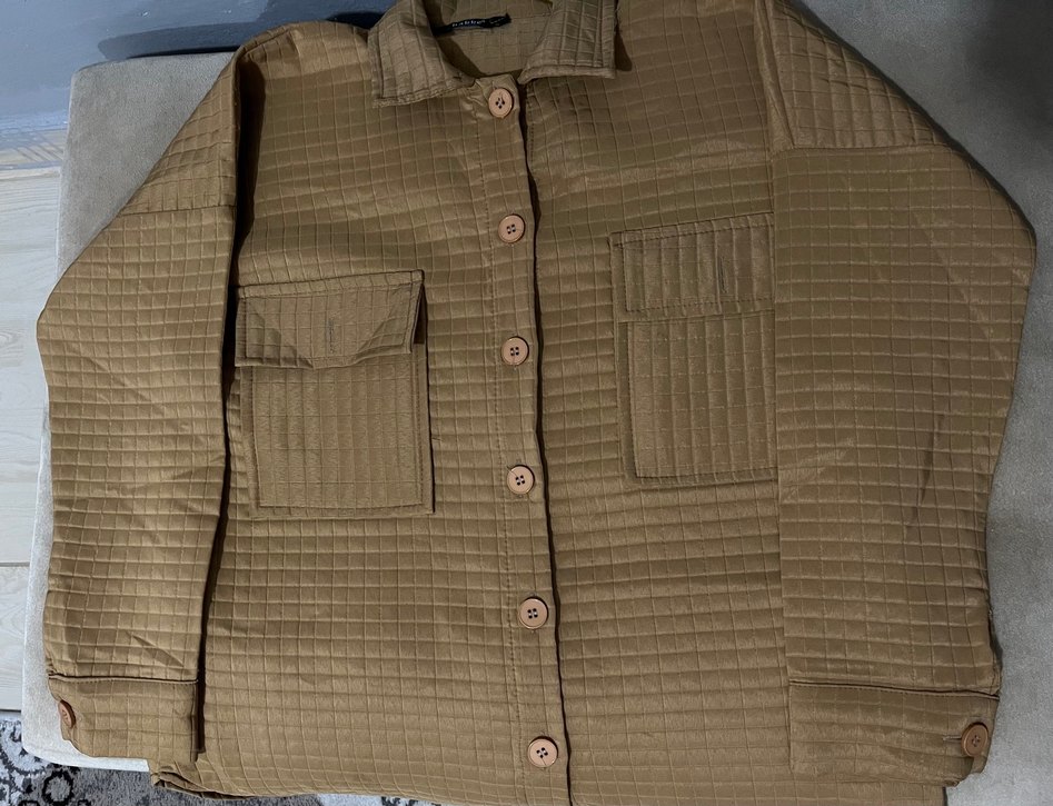Düğmeli önü, uzun kollu ve kesik yakalı kahverengi keten kadın ceket. Rahat kesimi ve midi boyu ile günlük sokak stiline uygundur. İki cep bulunur.