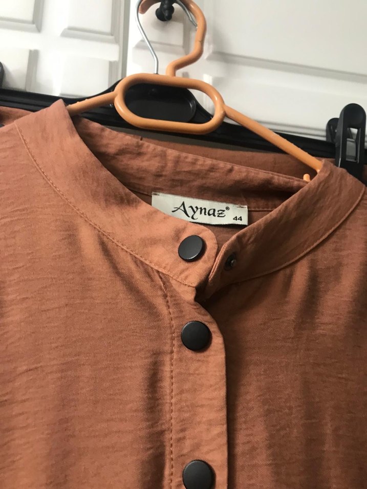 Sadece 1 kez giyildi tertemiz çok eagat pantolon paçası bolDüğmeli, uzun kollu, yuvarlak yaka kahverengi keten takım Bol kesim ve parlak baskı deseniyle dikkat çeker. Marka: Aynaz.