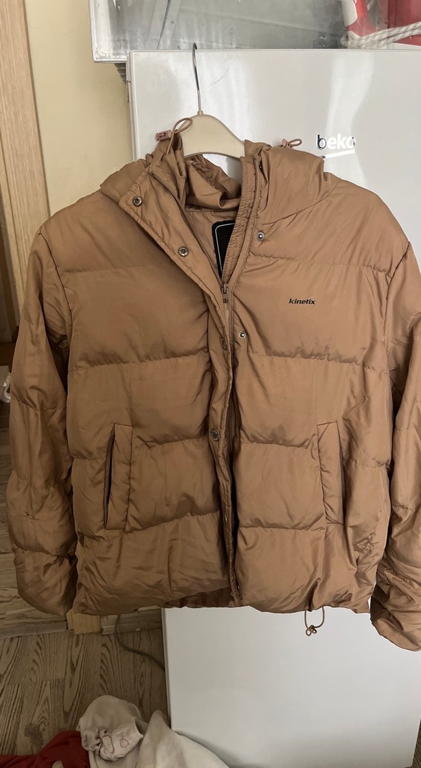 kahverengi kadın kışlık mont. Midi boyda, fit kesim ve cepli, rahat ve sıcak kumaştan üretilmiş, genç ve trend sokak stili için uygun.