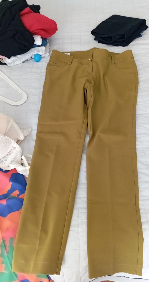 Düğmeli, kahverengi, midi boy kadın kumaş pantolon. Rahat kalıp ve yumuşak sentetik kumaştan, günlük sokak stili için uygundur.