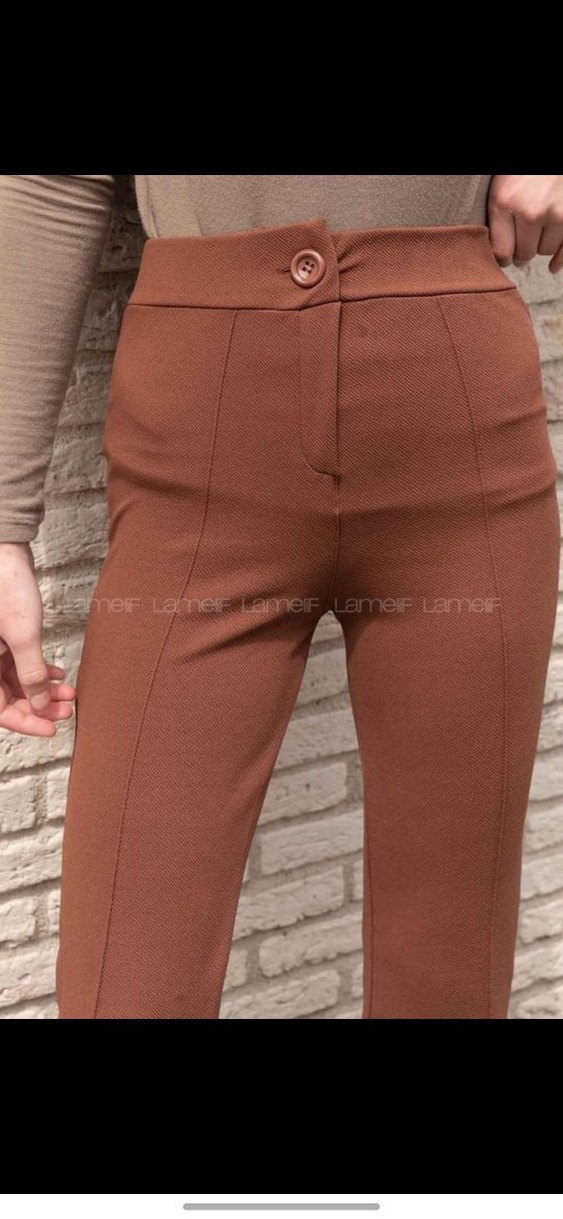 Düğmeli Kahverengi Kadın Kumaş Pantolon