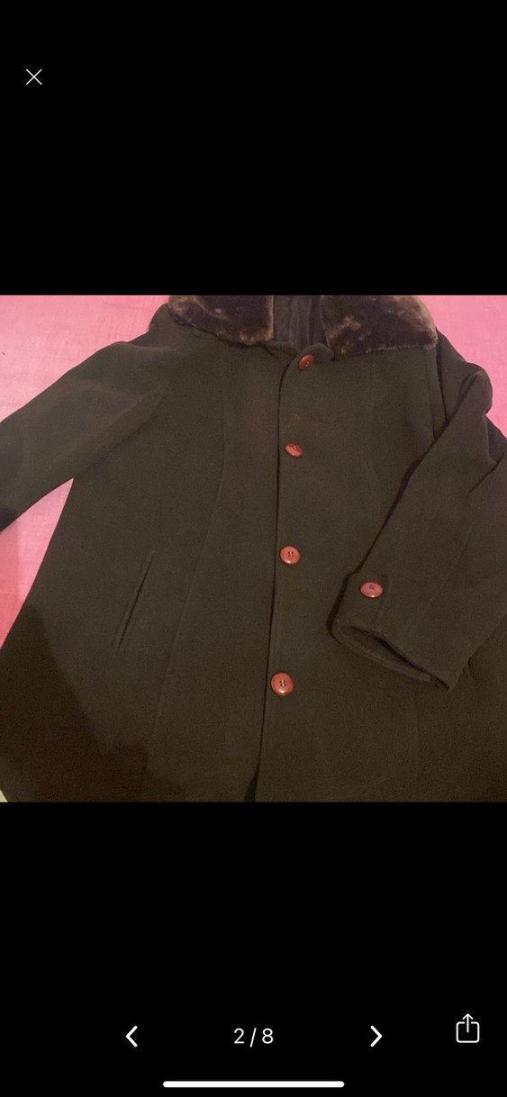 Düğmeli ön, kesik yakalı, uzun kollu koyu kahverengi kadın kaban. Rahat kesim, yumuşak ve sıcak kumaş, midi boy, günlük kullanıma uygun. hiç kullanılmayan bir ürün