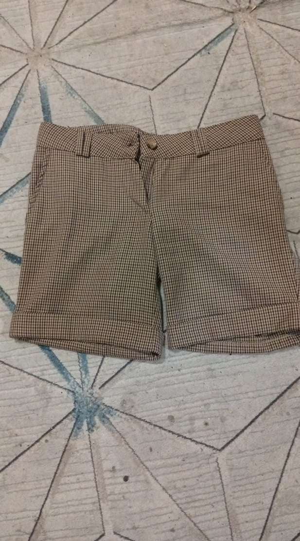 Düğmeli, kahverengi pamuklu mini şort, rahat sokak stili ve günlük kullanım için uygundur. Desensiz sade tasarım sunar.