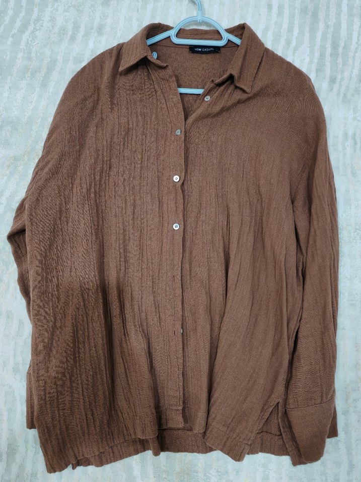 Düğmeli Kahverengi Kadın muslin gomlek