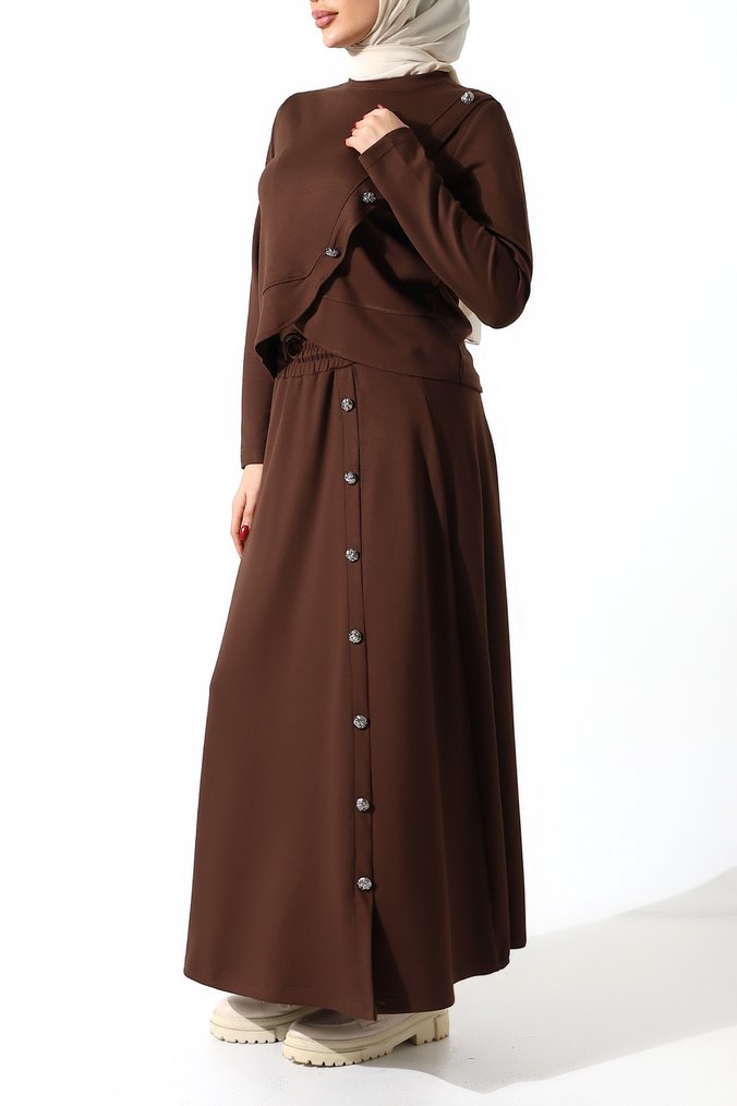 Düğmeli Kahverengi Kadın oysho takım