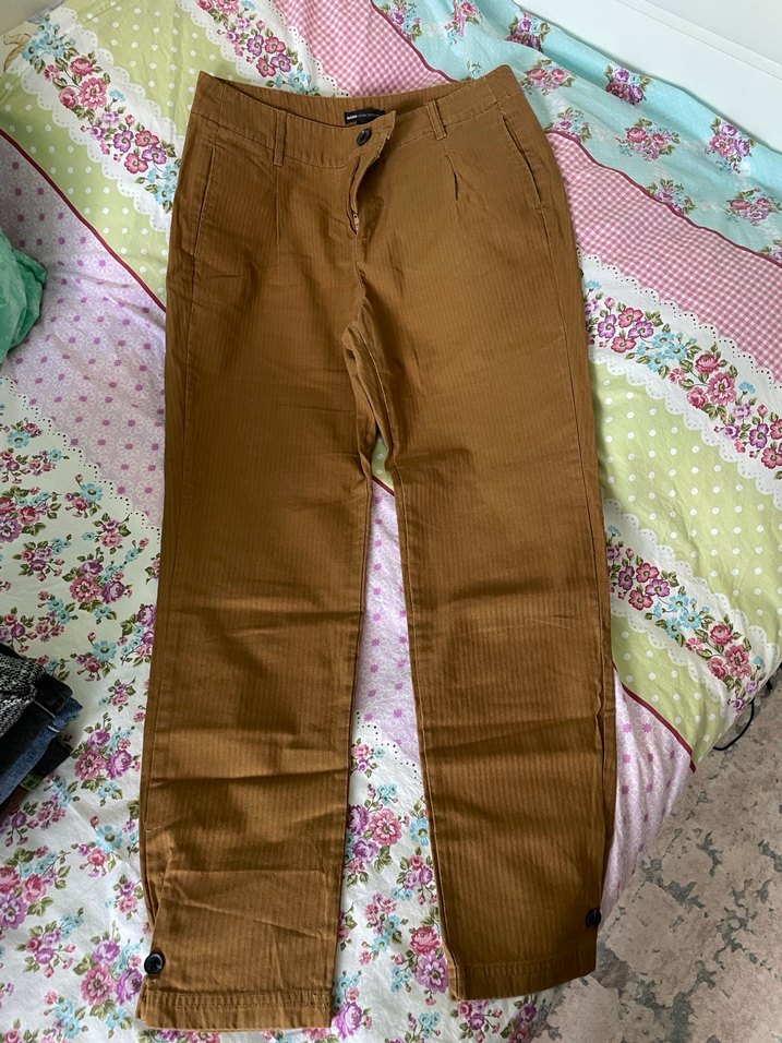 Düğmeli Kahverengi Kadın Pantolon