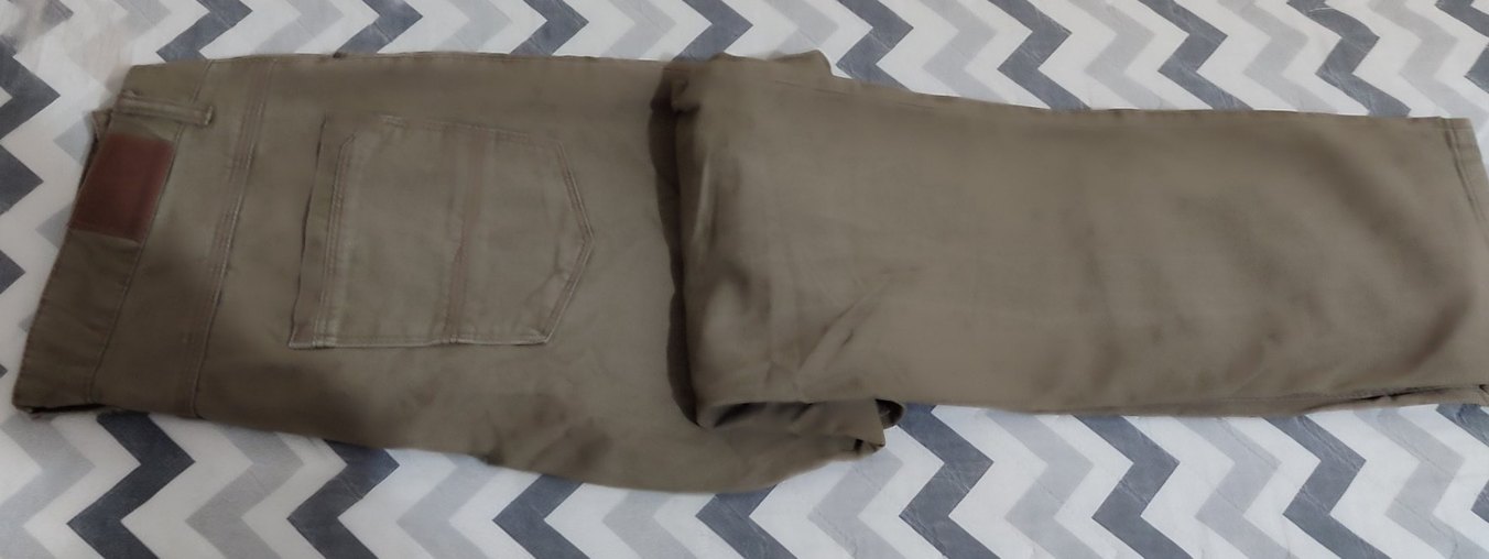 Kahverengi , düğmeli ve normal boyda, düz ve rahat kesim kadın pantolon.Kalıbı geniştir.