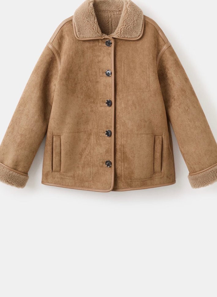 Düğmeli Kahverengi Kadın Süet Ceket Mango