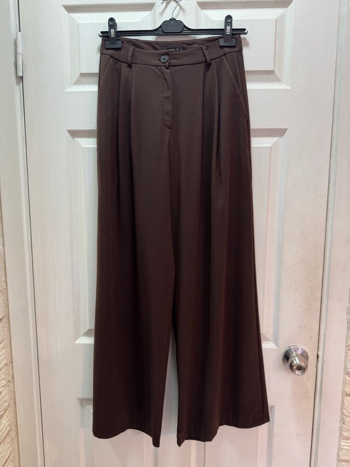 Düğmeli ön kısmı ve uzun kesimiyle kahverengi kadın kumaş pantolon. İpeksi dokusu ofis ve günlük rahat tarz için uygundur. ✨ Ara bedenseniz bir beden büyük tercih ediniz MARKA TEMSİLİDİR !