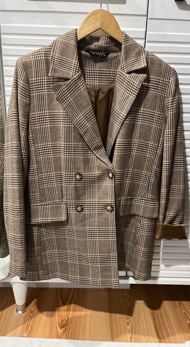 Kahverengi kareli kadın blazer, kesik yaka ve düğmeli ön tasarıma sahiptir. Normal midi boyda, regular fit ve askılı kolludur. Sentetik kumaştan üretilmiştir, ürünün kolunda bir kaç tiftik vardır aldığımdan beri iki kere giydim