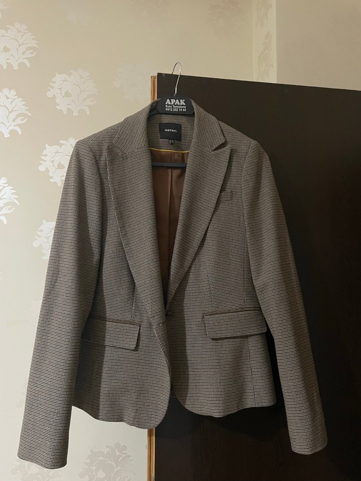 Düğmeli Kahverengi Kareli Kadın Kumaş Pantolon çeket takım