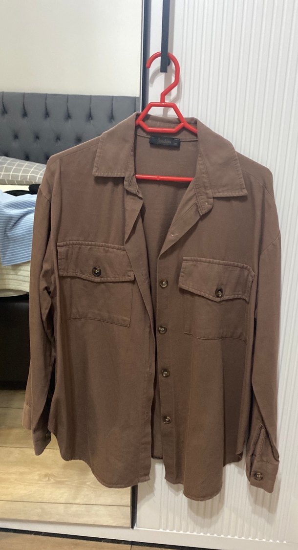 Düğmeli Kahverengi Keten Kadın Gömlek