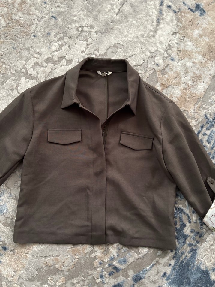 Düğmeli, uzun kollu, kahverengi keten midi ceket. Geniş kesim ve kesik yaka detaylarıyla günlük sokak stiline uygun. Ürünün herhangi bir deformesi yoktur