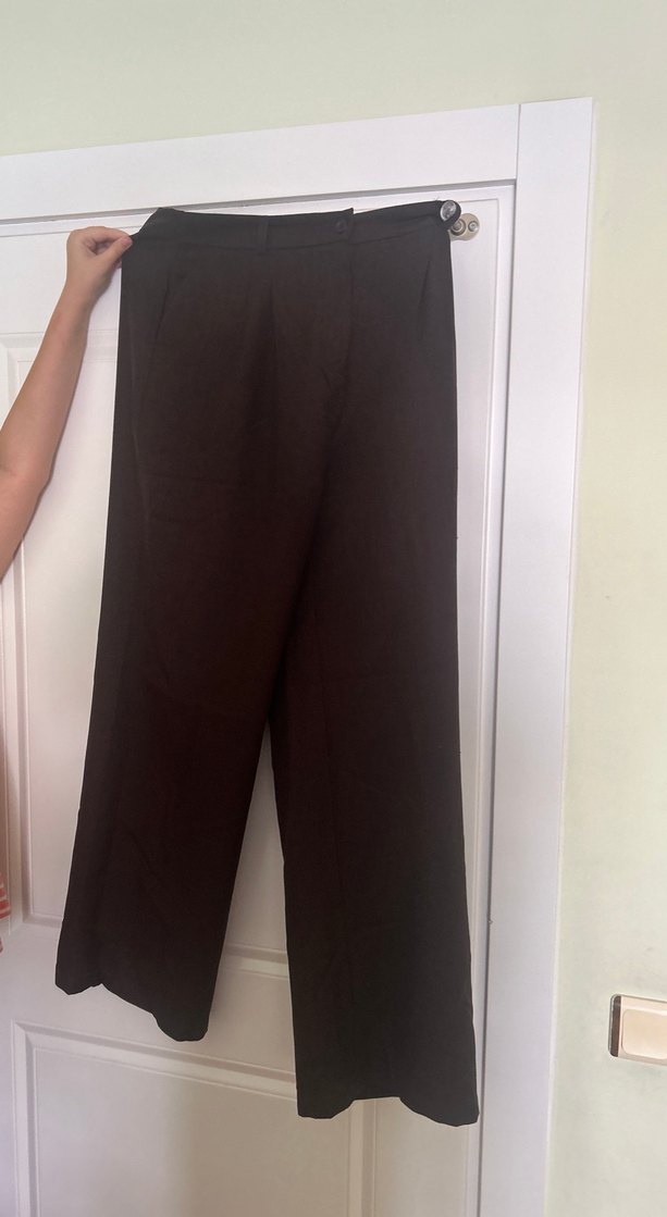 Düğmeli, kahverengi ve ipeksi kumaştan yapılmış, normal kesim midi boy kadın pantolon. Ofis ve iş ortamları için uygun, normcore tarzında rahat bir model. ✨