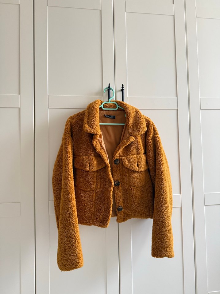 Düğmeli ve çıtçıtlı kahverengi midi ceket, notlu yaka ve uzun kollu. Yumuşak ve sıcak kumaştan, rahat kesim, günlük sokak stili için uygun. ✨