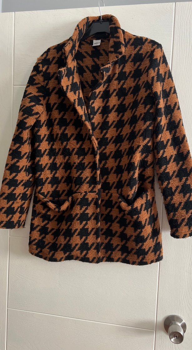 Kahverengi, düğmeli ve yumuşak yün kumaştan yapılmış, normal uzunlukta ve regular fit kadın kaban. Uzun kollu ve notched lapel yakalıdır.