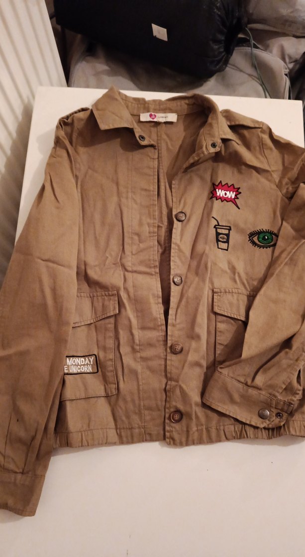 Düğmeli, nakışlı detaylı kahverengi ceket Notlu yaka ve uzun kollu, rahat kesim, günlük sokak stili için uygundur. ✨