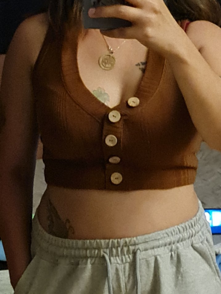 Düğmeli Kahverengi (S) ve beyaz (M) V Yaka Crop 2si tek fiyat