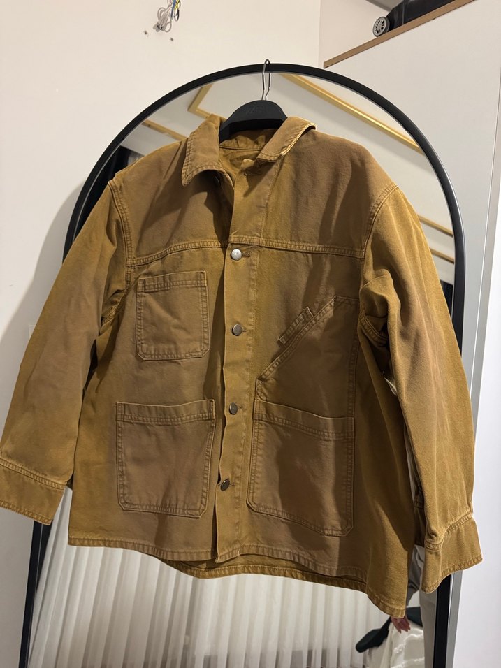 Kahverengi süet kumaştan üretilmiş, düğmeli, uzun kollu ve kesik yakalı kadın ceket. Bol kesimi ve midi boyuyla günlük rahat kullanıma uygundur. Çoklu cepleri ve parlak dokusuyla dikkat çeker.