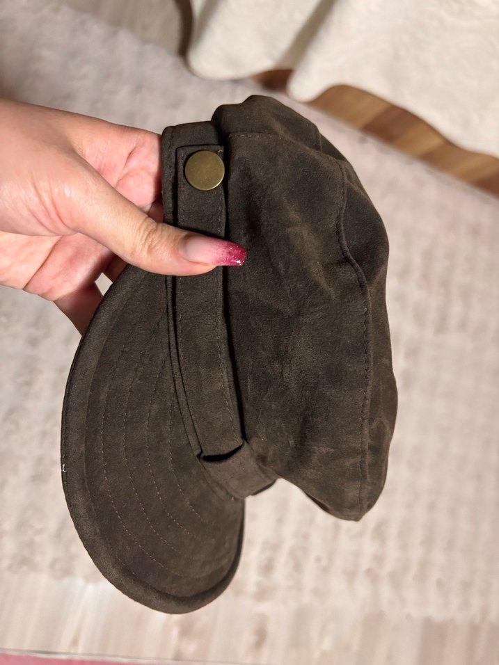 Düğmeli Kahverengi Süet Kadın Şapka